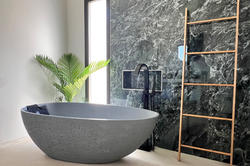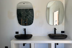 On prolonge la visite dans la chambre spacieuse du Rez-de-chaussée avec dressing SUR-MESURE, à proximité, la salle de bains propose des WC Japonais, une douche et une incroyable baignoire îlot Ovale, entourée de panneaux Muraux effet Marbre Vert, Relaxation garantie. Pièce centrale de la villa : cet escalier en béton ciré beige qui s'accorde parfaitement à la décoration pure et naturelle et qui nous permet de découvrir à l'étage, deux jolies chambres avec accès privatifs au toit Terrasse avec vue sur le massif de la Sainte Baume et à l'intégralité de la parcelle de 2174 m², sur laquelle vous pouvez laisser court à votre imagination pour l'aménagement paysagé et la construction d'une piscine (déjà autorisée sur le Permis de construire) .... COUP DE CŒUR ASSURE